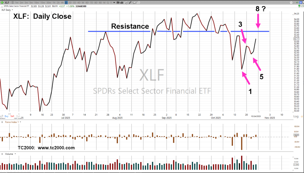 With that said, price action of ETF financial sectors KRE and XLF, have not completely melted down … yet (not advice, not a recommendation).