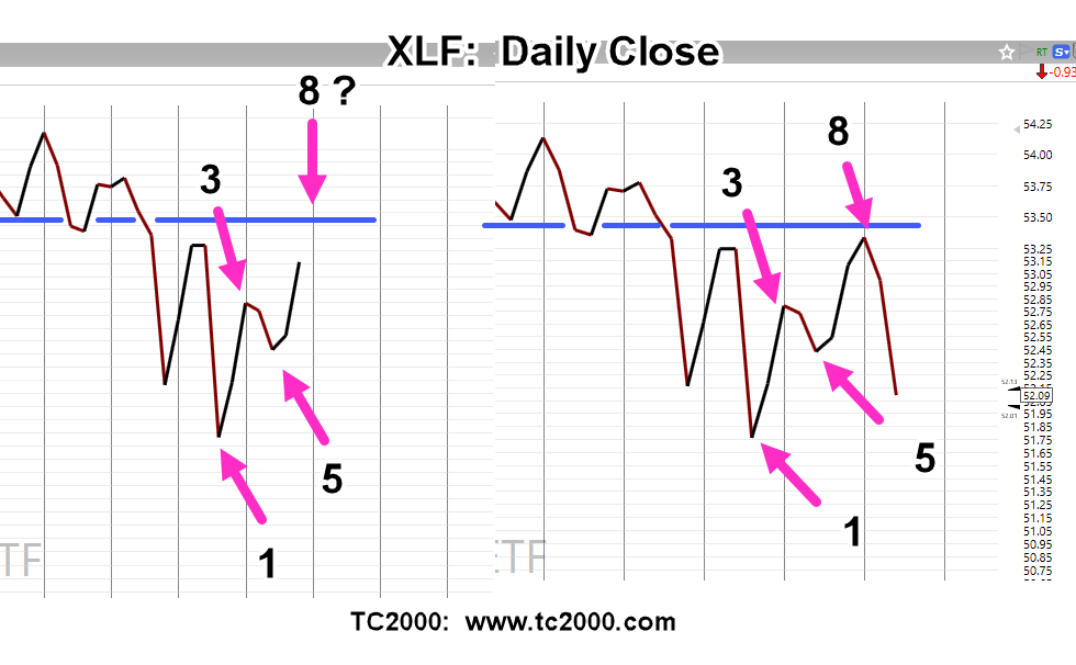 The segment at left, shows confirmation, the financial sector is following a Fibonacci sequence for pivot points.
