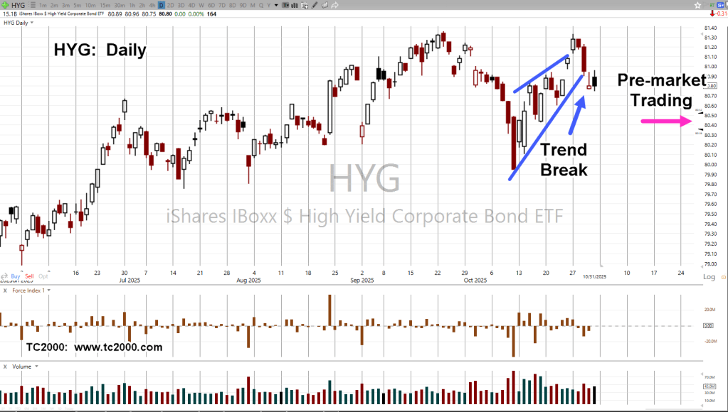 When looking at the chart of ETF sector fund HYG, that’s what we have.