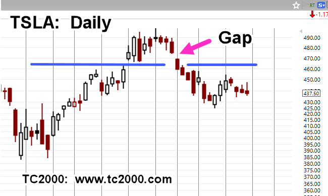 Since price action continues to hover below resistance (blue line), the expectation builds for an attempt to close the gap before, or at, earnings (not advice, not a recommendation).