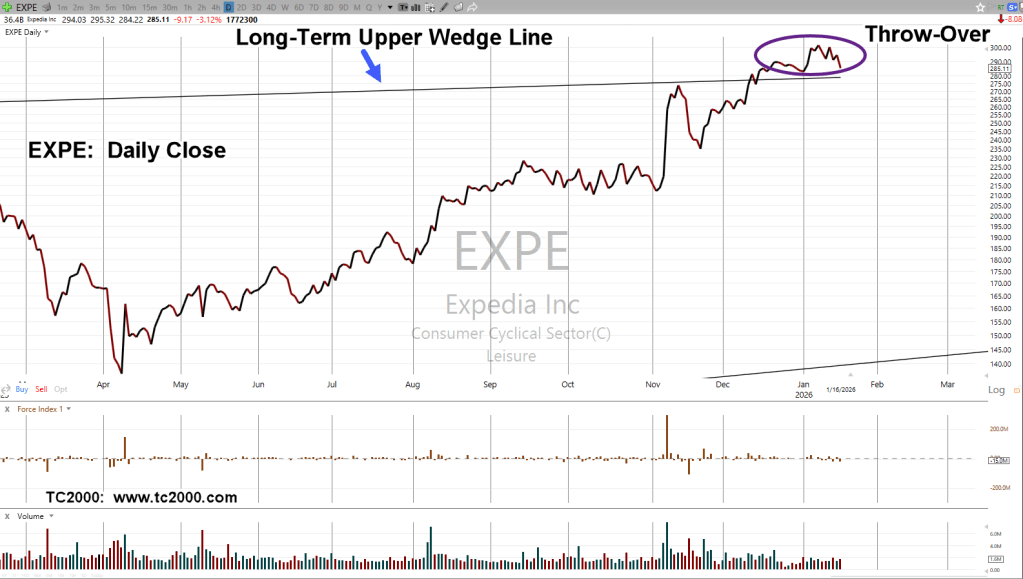 We can almost stop there and just show the chart, but let’s at least say that earnings for EXPE are coming up early next month, link here.