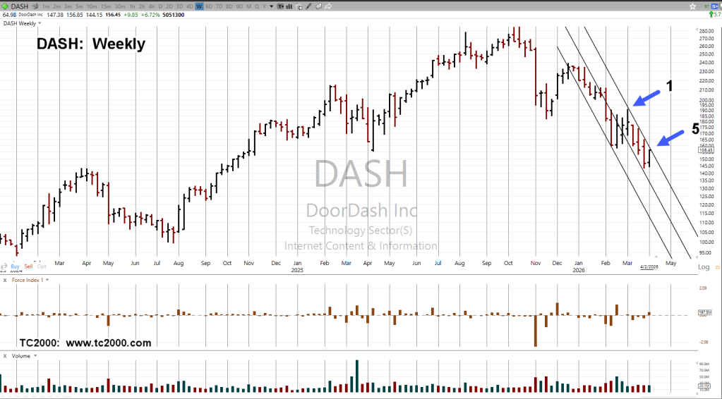 From all-time highs to last Thursday’s close, DASH, is down over 45%.