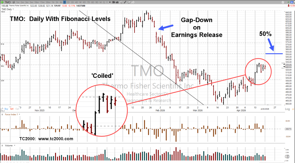 The expectation for TMO, was an immediate (decisive) continuation lower after its ‘test‘.
