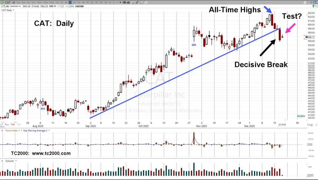 Unlike CAT, in the prior update, we don’t have a decisive indicator (volume) for a trend break (not advice, not a recommendation).
