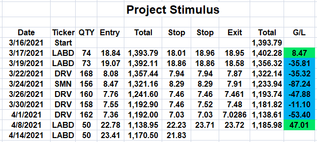 Wednesday’s downside action in LABD, resulted in the LABD-22-10, position being stopped out with an overall gain around 7.12%.