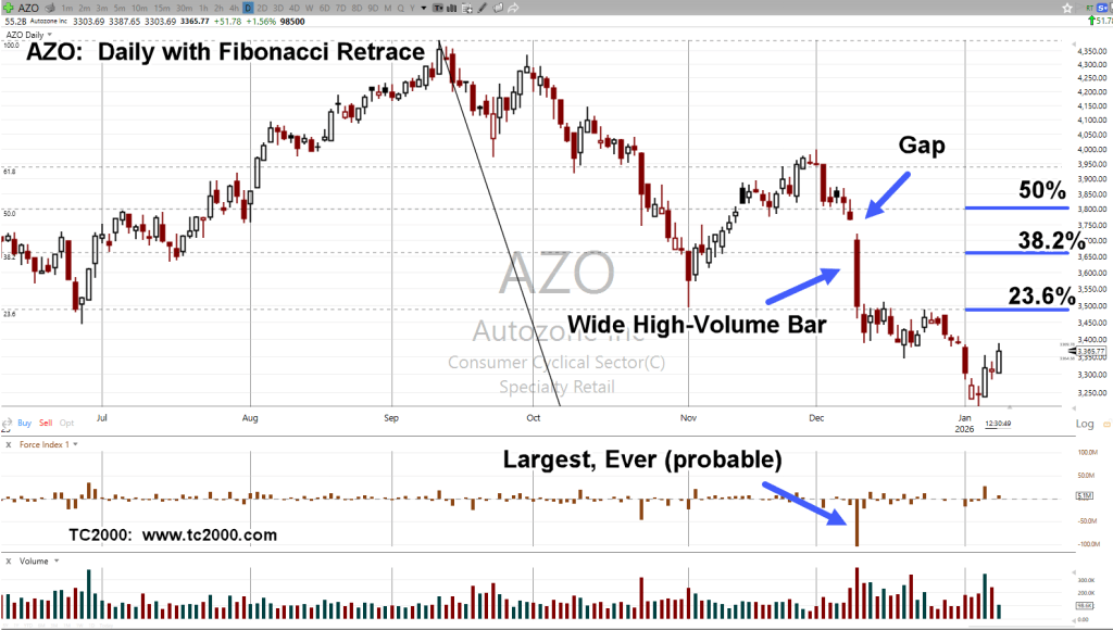 Looking back through historical data, downward thrust energy for AutoZone this past December 9th, was possibly the largest, ever.