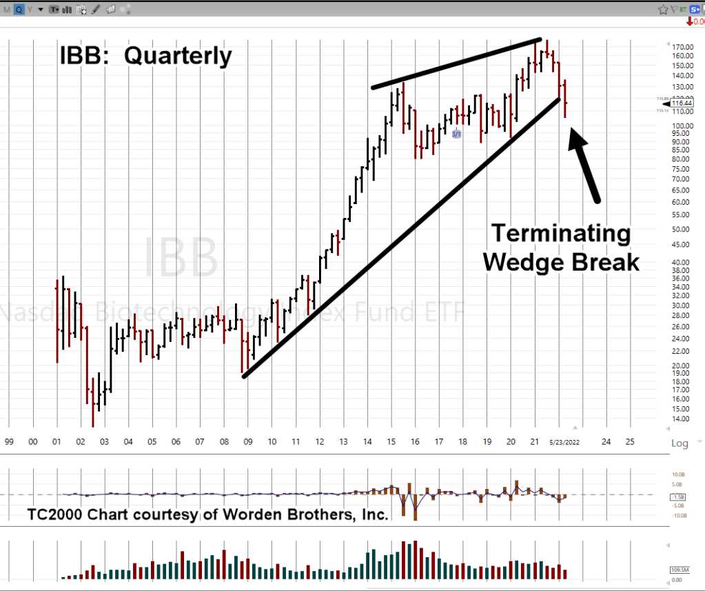 If we look at biotech, IBB, on a quarterly basis we have the following chart.