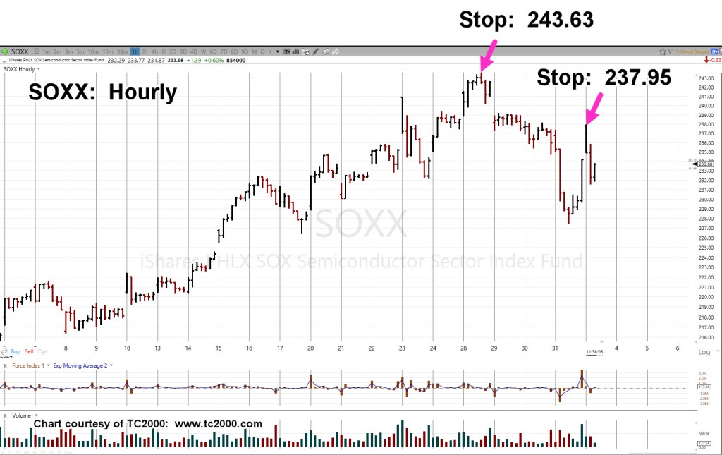 Stated in a prior update, a short position on the SOXX would have an initial stop of 243.63.