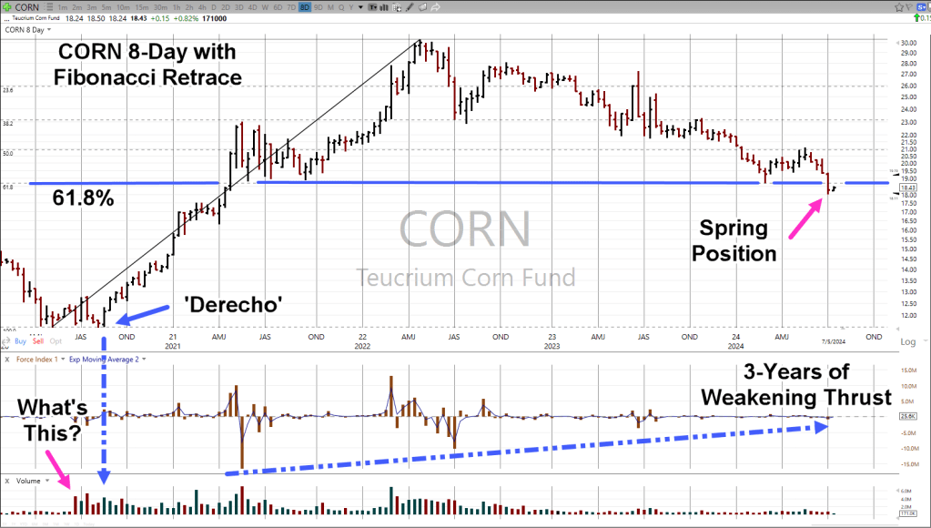 Moving on to the right-side, CORN held below support for seven months before pivoting higher.