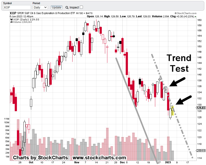 It’s about twenty-minutes before the regular open and XOP, is trading higher … further confirming we’re headed for a potential set-up and reversal (not advice, not a recommendation).