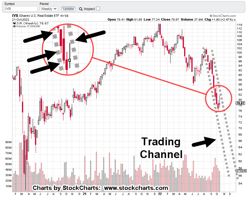 Unless IYR, somehow gets out of the channel, it’s declining at -84%, annualized.