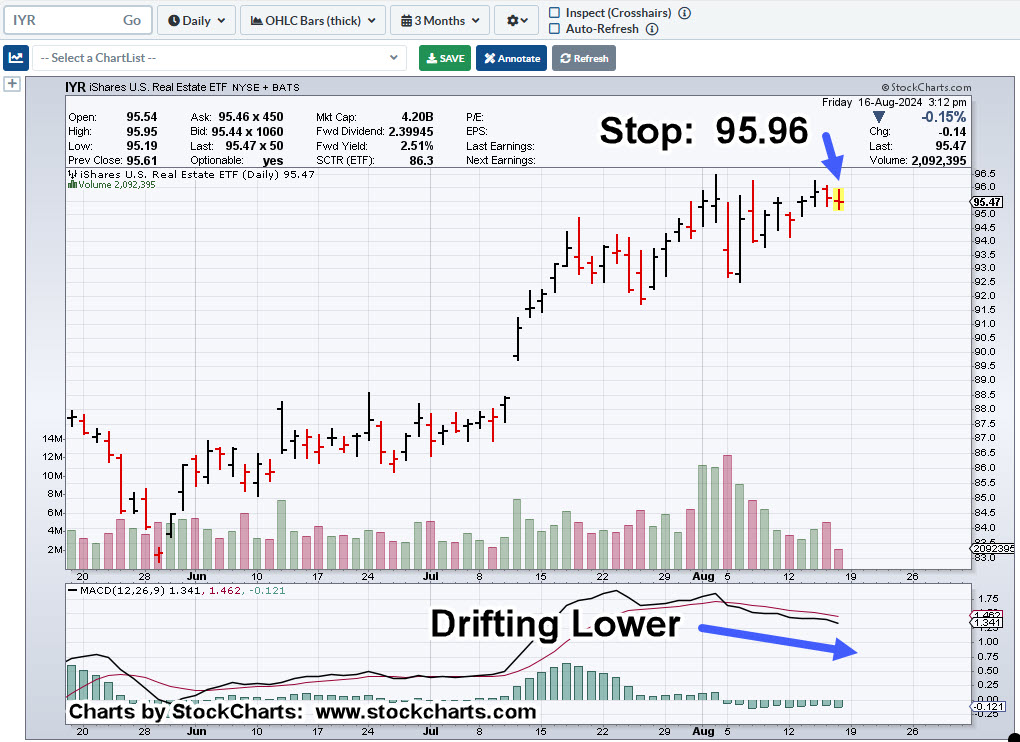 As stated in this update, the short trade via DRV, had a tight stop. That position was exited early in the session with a ding (loss) of about 4%.