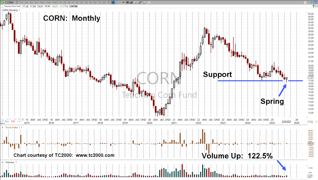 From this site’s perspective, it’s been a long time since the last update on Teucrium tracking fund CORN, link here.