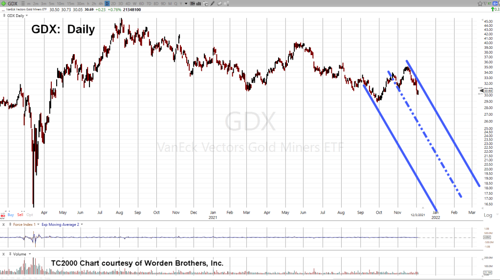 However, it looks like gold and miners alike, are not waiting around … potentially beginning their decline in earnest.