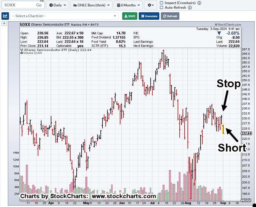 In the sidebar, we can already see a short position was opened during last Friday’s session: SOXS-24-15 (not advice, not a recommendation).