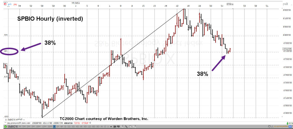 We’ve taken the hourly chart of biotech SPBIO, and inverted it; shown below: