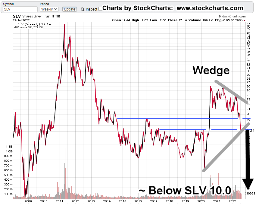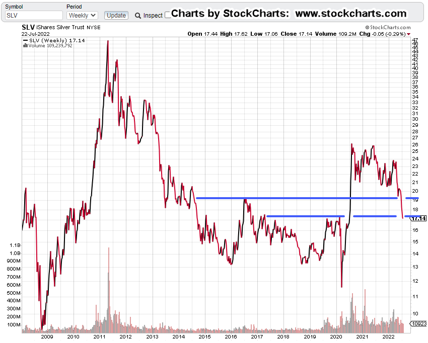 Added to that pattern is a measured move target should SLV, break down to lower levels after an upward test.