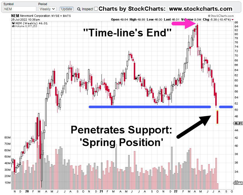 At this juncture, NEM has penetrated long established support; technically it’s in ‘spring position’.