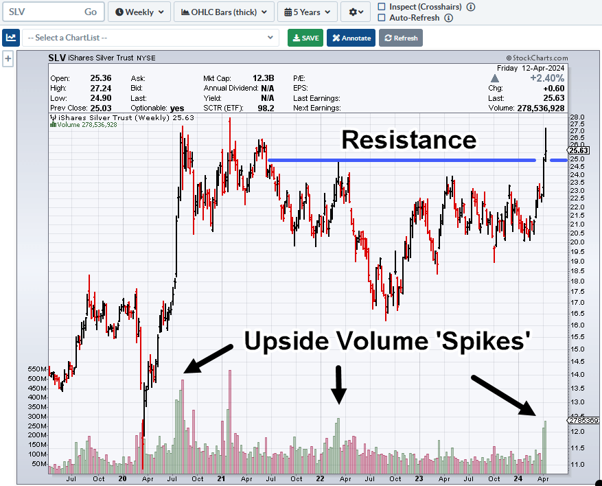 Silver SLV, Weekly