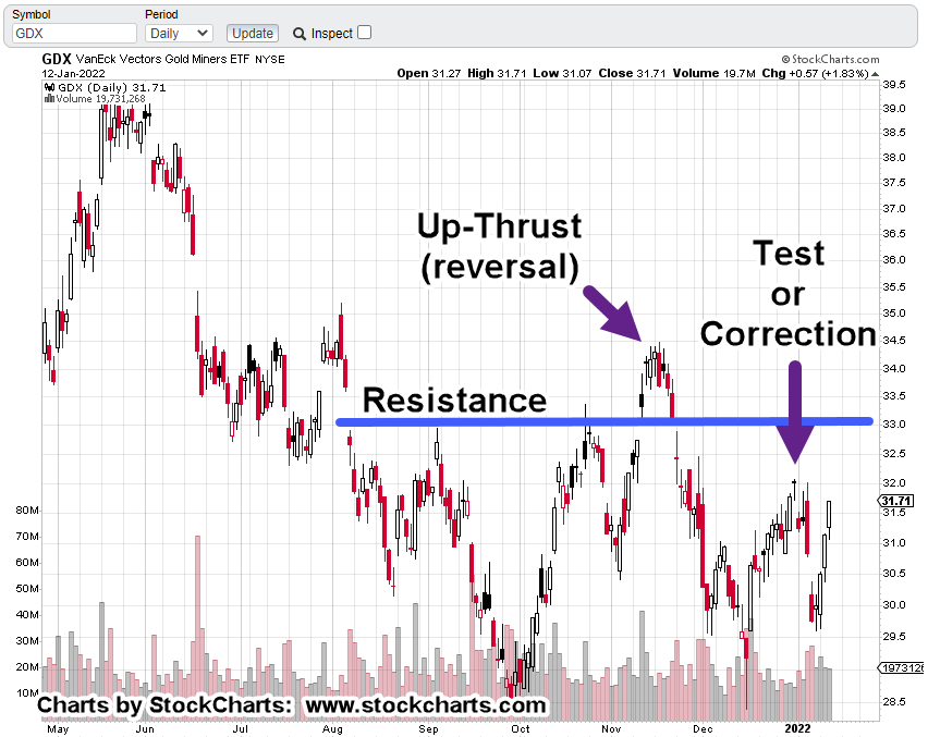 Added to that pattern is a measured move target should SLV, break down to lower levels after an upward test.
