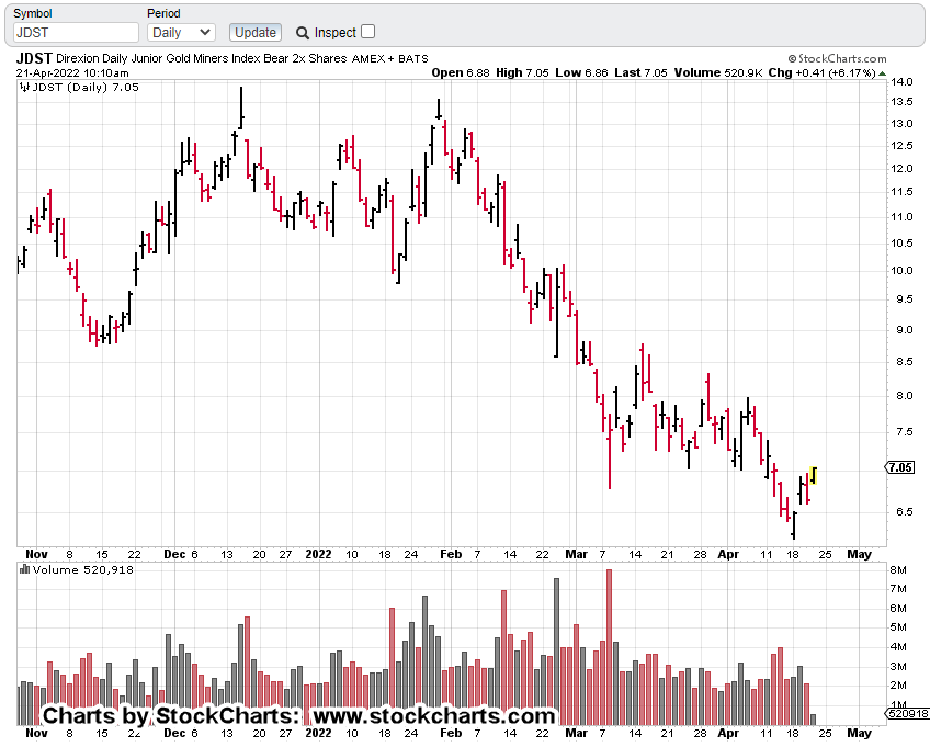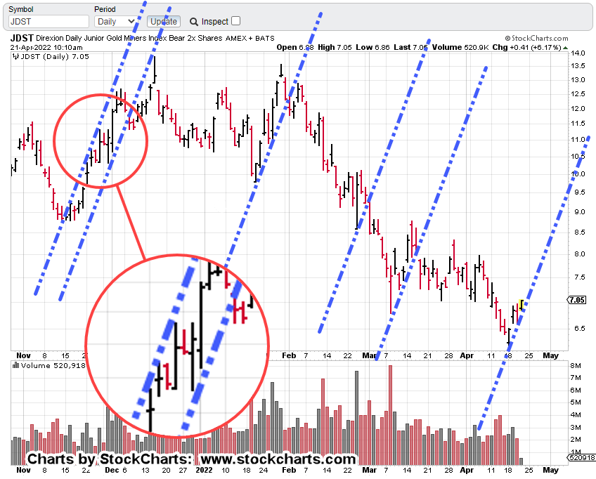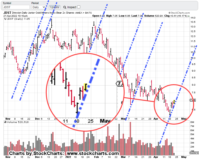 The downside action in Junior Miners GDXJ, was a vicious move; from top to bottom (thus far) it dropped over – 17.5%, in just six trading days.
