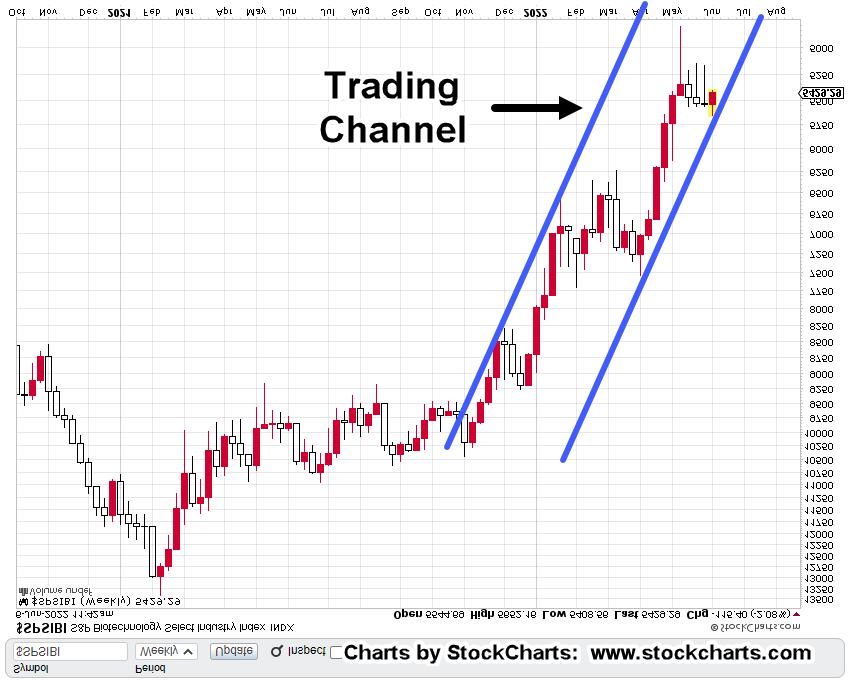 The focus is on SPBIO, instead of IBB, as it’s the weakest of the two indices.
