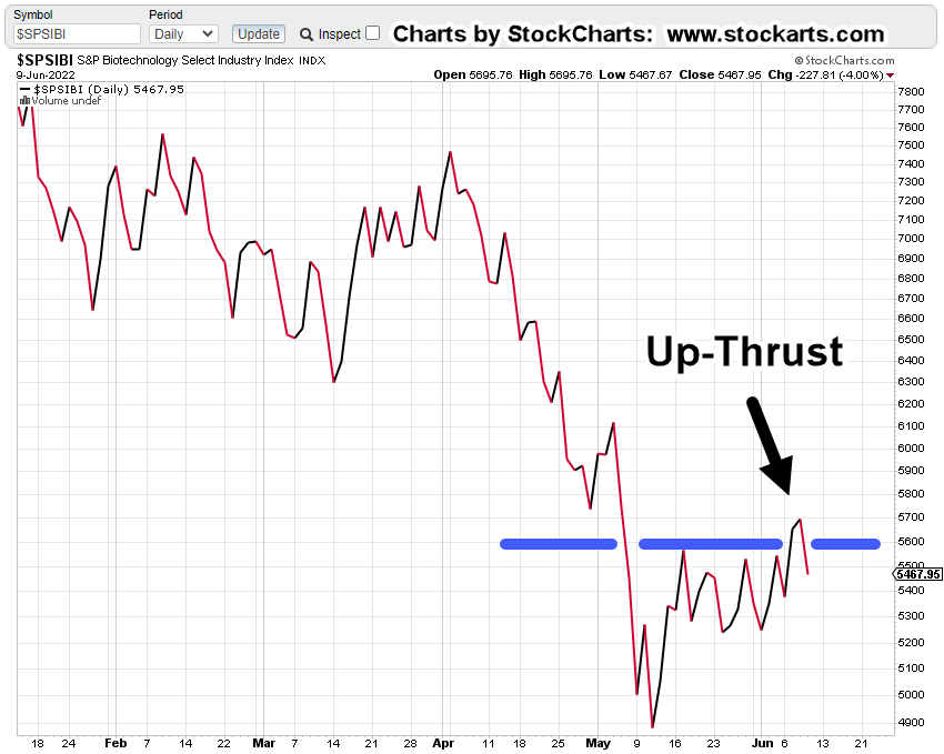 The S&P needs to print a new daily low to make it official but our chief cook and bottle washer, biotech, looks like it’s not waiting around.