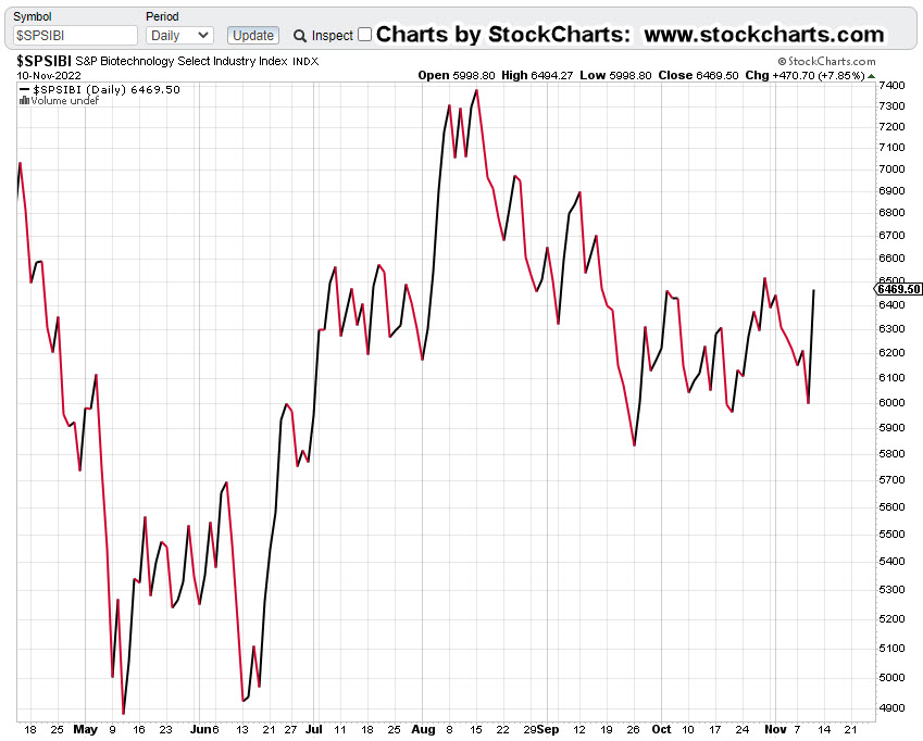 If indeed we’re at a reversal test of biotech and if that test passes (SPBIO downside continues), the move has the potential to be historic.