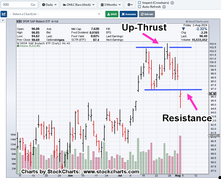 However, last week, TLT reversed down and eclipsed the previous two-weeks of gains.