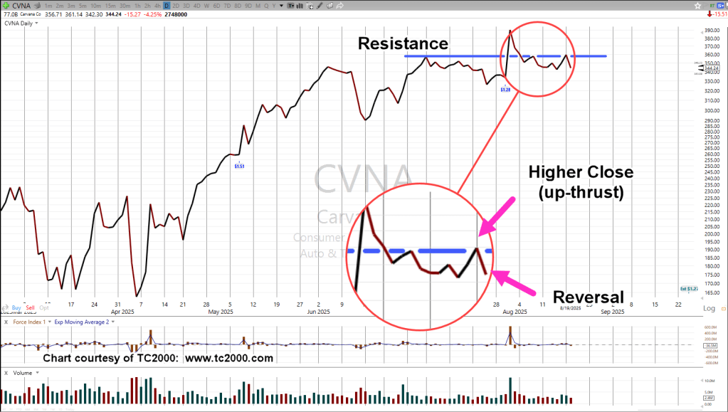For today however, the main take-away is that Friday was outside-down (key reversal) on heavy volume.