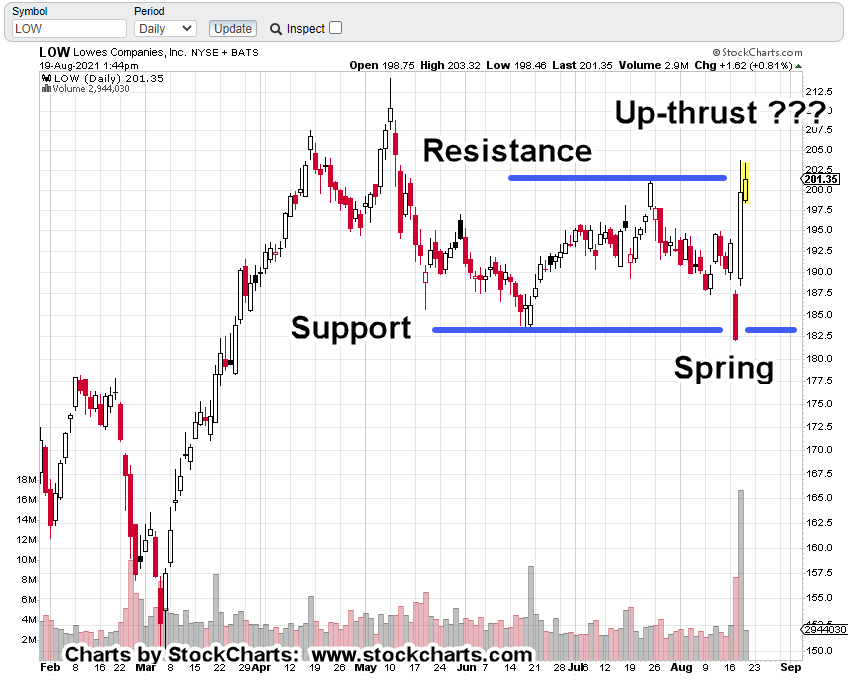 The daily chart of LOW (above), is how it looked one month ago. This report highlighted, certain market behaviors repeat.