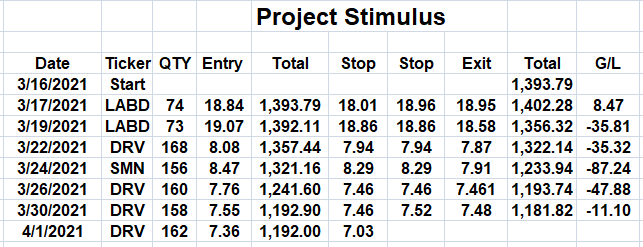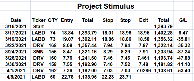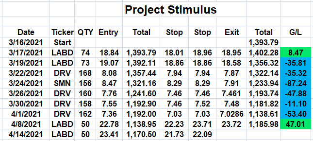 The Project Stimulus table has been updated to include the new (hard) stop level. With LABD currently up a good 5.50%, and looking to move higher, it’s not likely the stop will be hit.