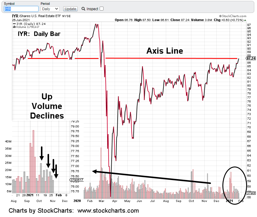 If IYR opens lower or gap-lower, we’ll have to wait and see if it posts a new daily low (below IYR ,77.24).