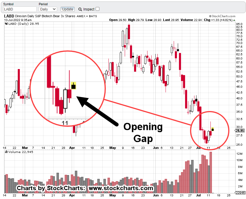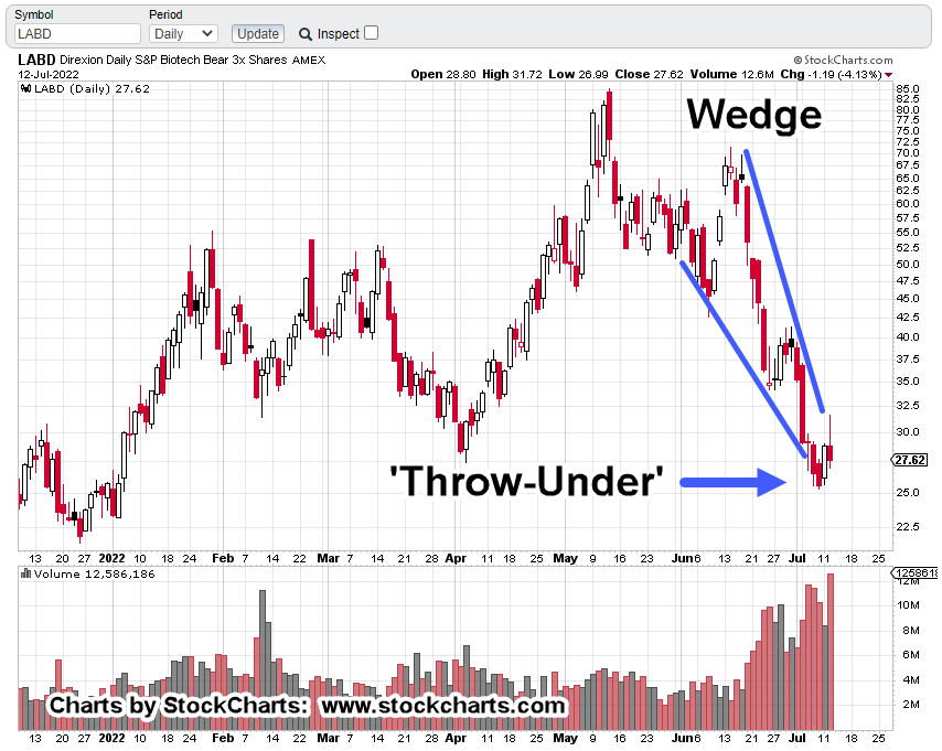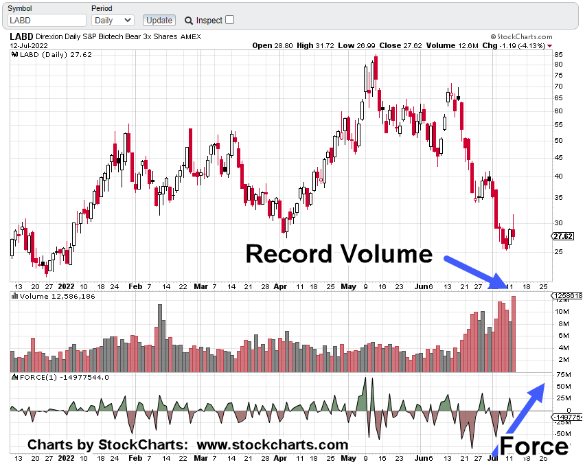 Part of the reason to focus on LABD was the record volume as shown on the chart below.