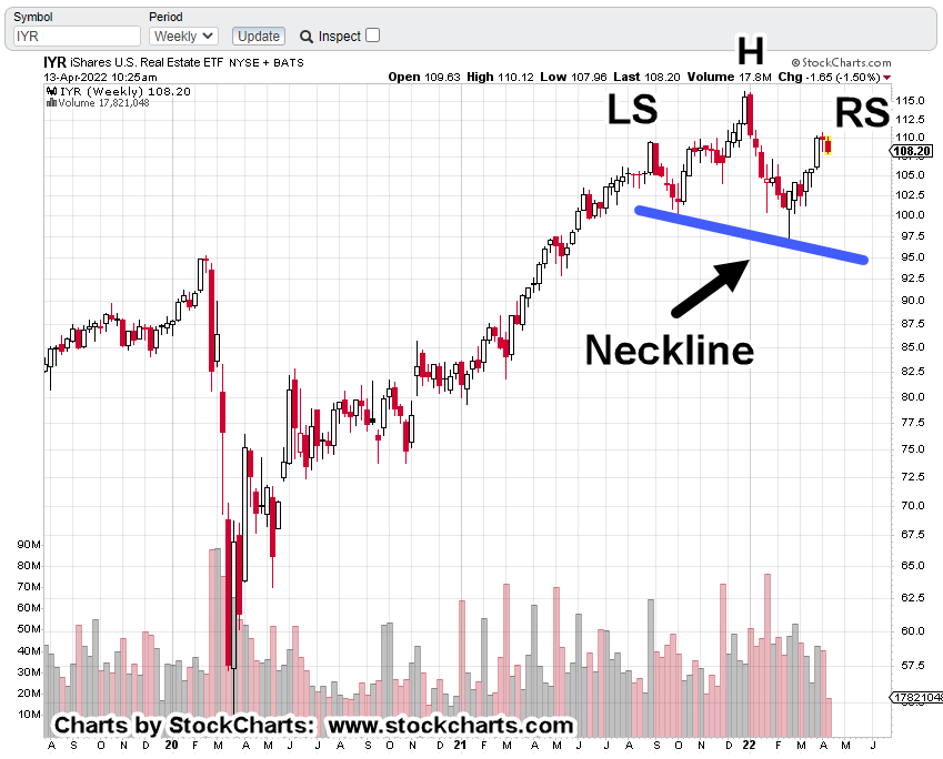 The Head & Shoulders pattern on the weekly chart of IYR, could mean reversal ahead.