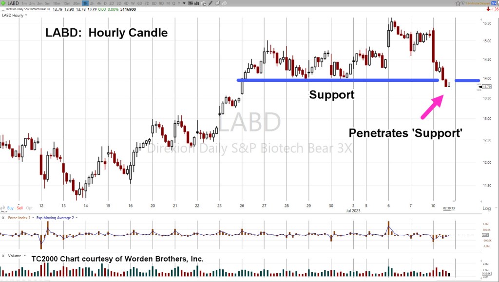 For reasons to be covered in a later update, this sector’s being shorted directly as opposed to using leveraged inverse LABD (not advice, not a recommendation).