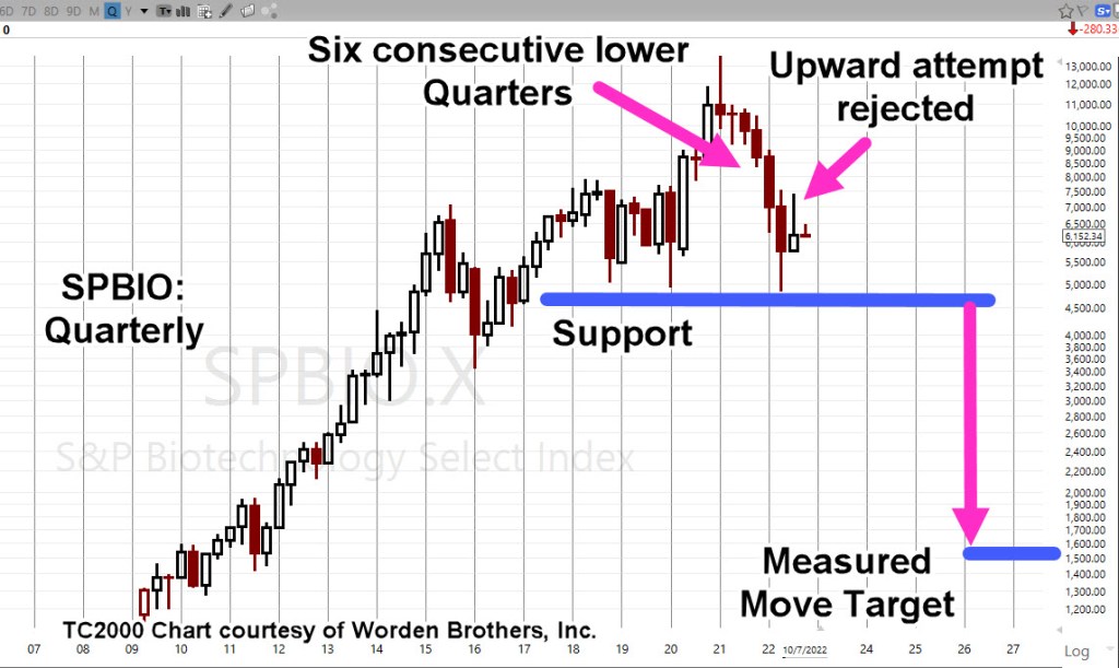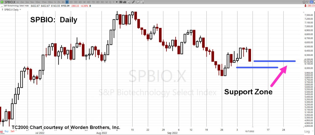 What’s not labeled above, is an apparent Head & Shoulders pattern forming; the arrow showing the rejection of the upward move could be the top of the Right Shoulder.