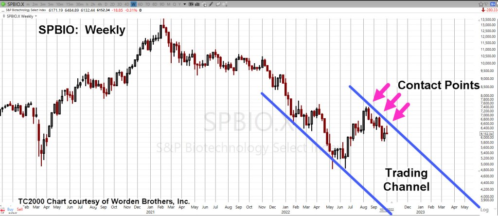 Moving on to the weekly, we see confirmation of the right-side trendline. Also shown is the potential trading channel.