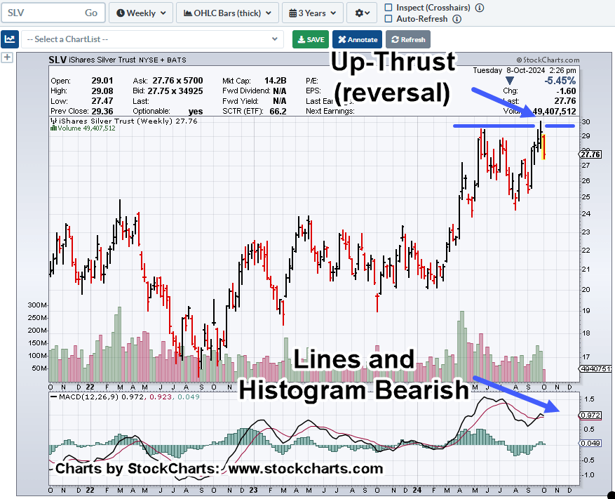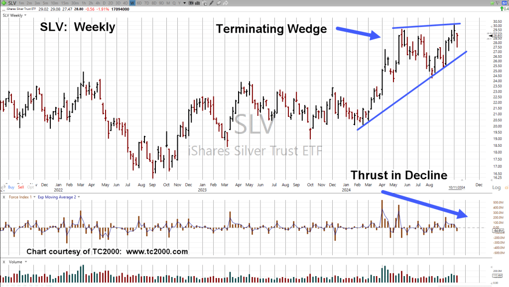 “The coming week could see SLV, inch its way higher to the measured move or continue the testing (possibly, reversal) action it started last week.“